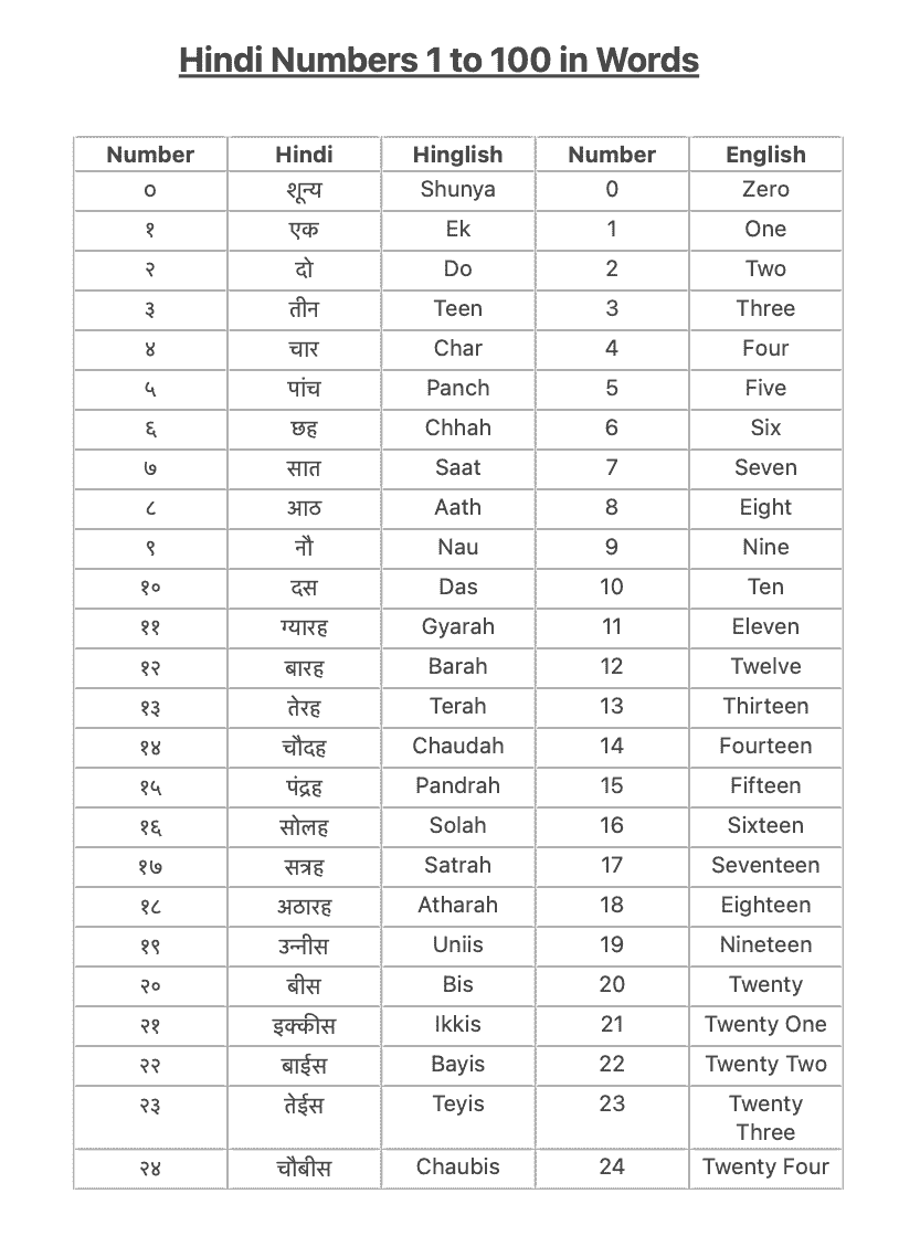 Hindi Ginti 1 To 100 In Words And Numbers Login Pages Info