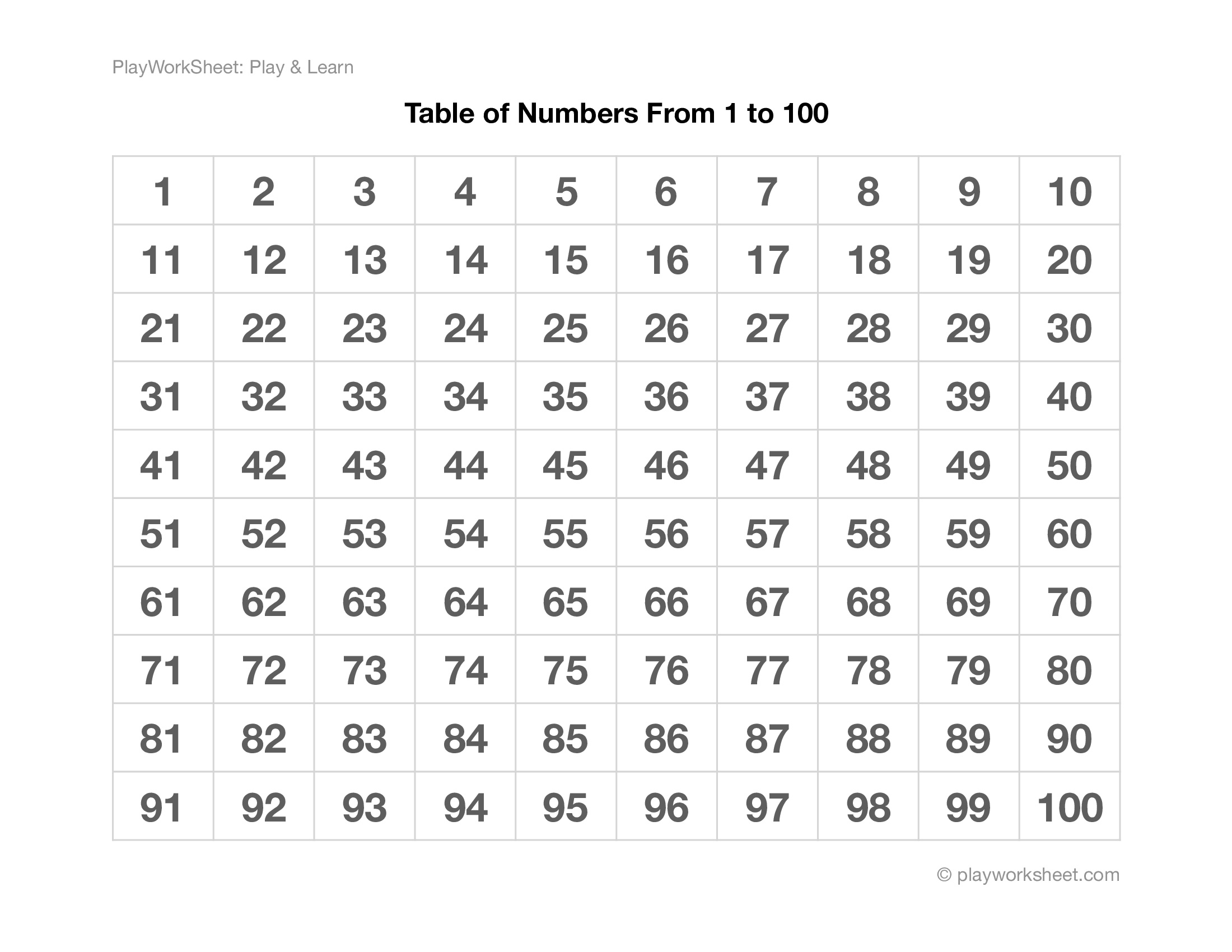 Exploring Numbers The Number Table 1 100 And Outlines Free