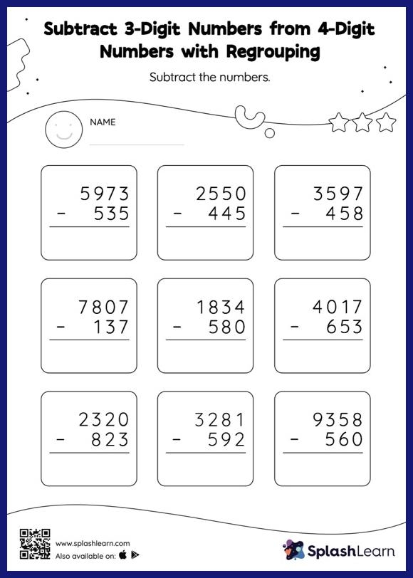 Outside the classroom, people also use worksheets in business settings. 3 Digit Subtraction With Regrouping can be used to plan a budget. Team leaders may use worksheets to create timelines.