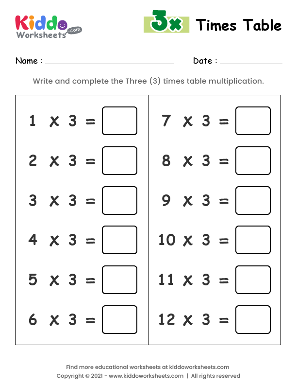 Free Printable 3 Times Table Worksheet Worksheet Kiddoworksheets