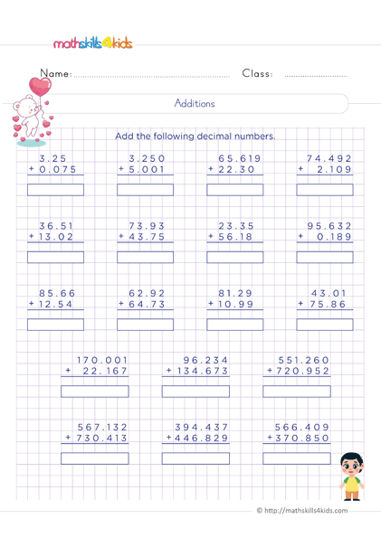 Download and Print Adding And Subtracting Decimals Worksheets Listed below