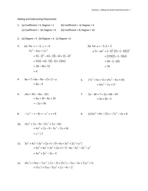 In conclusion, Adding And Subtracting Polynomials Worksheets are valuable tools for students to practice and improve their skills in simplifying polynomial expressions. By working through a variety of problems on these worksheets, students can develop a deeper understanding of how to combine like terms and perform operations on polynomials. With consistent practice and perseverance, students can become more proficient in adding and subtracting polynomials.
