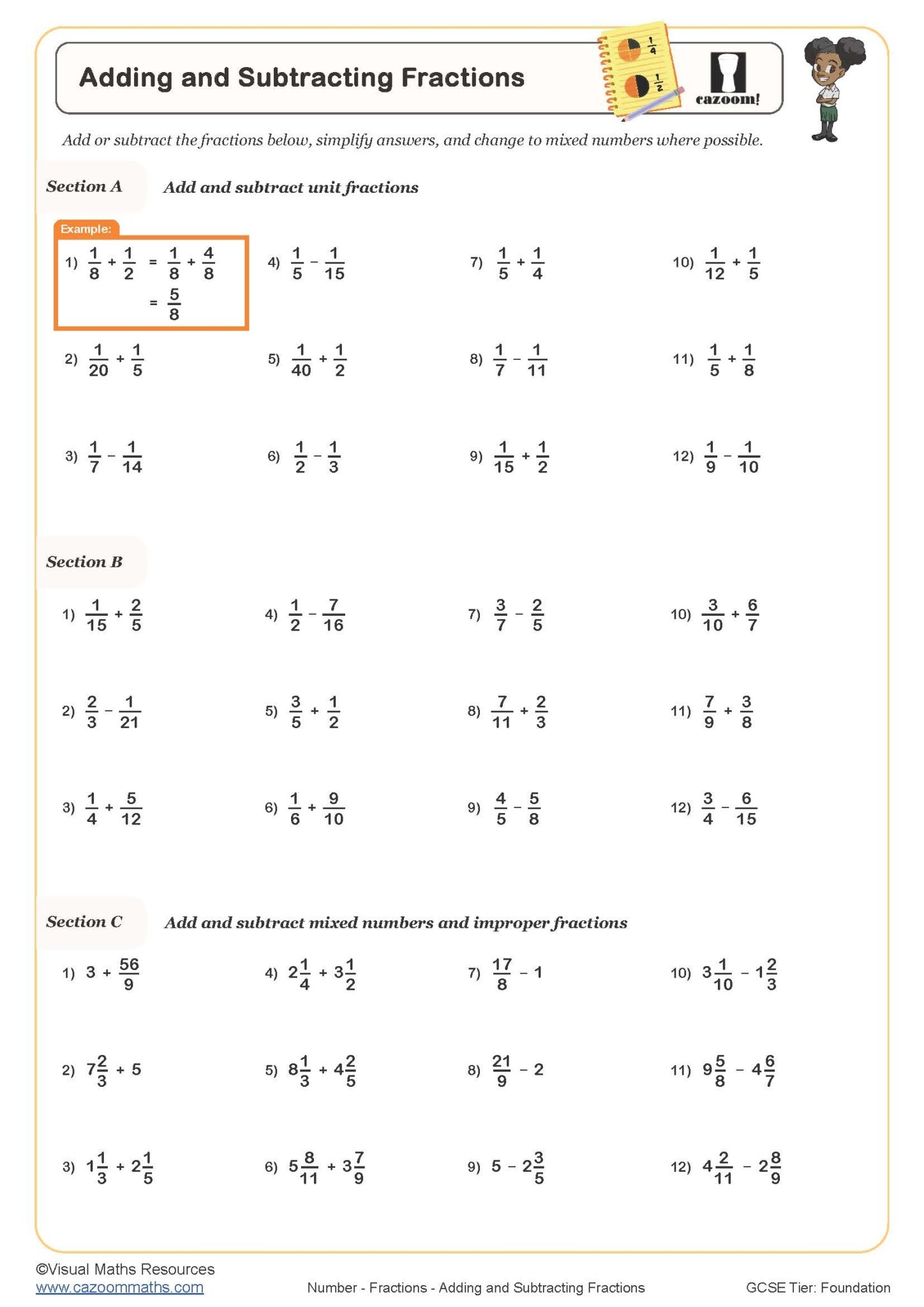Fractions Addition And Subtraction Worksheet Class 7 (additionworksheets.net)