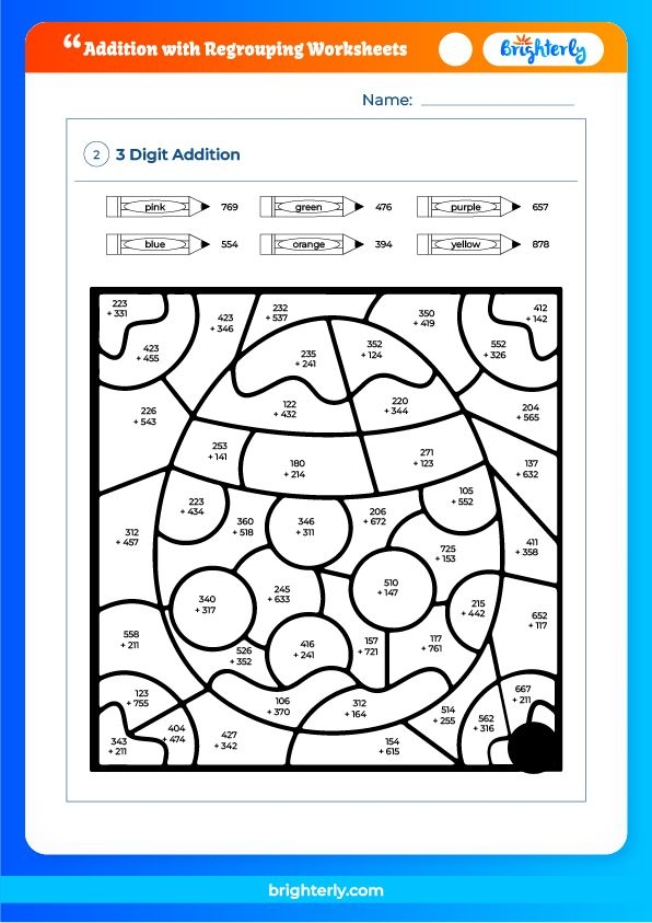 Worksheets provide a structured and organized way for students to practice addition with regrouping. They offer a hands-on approach that allows students to visually see how regrouping works and understand the concept better. By providing a variety of problems with different levels of difficulty, worksheets can help students build their skills gradually and at their own pace.