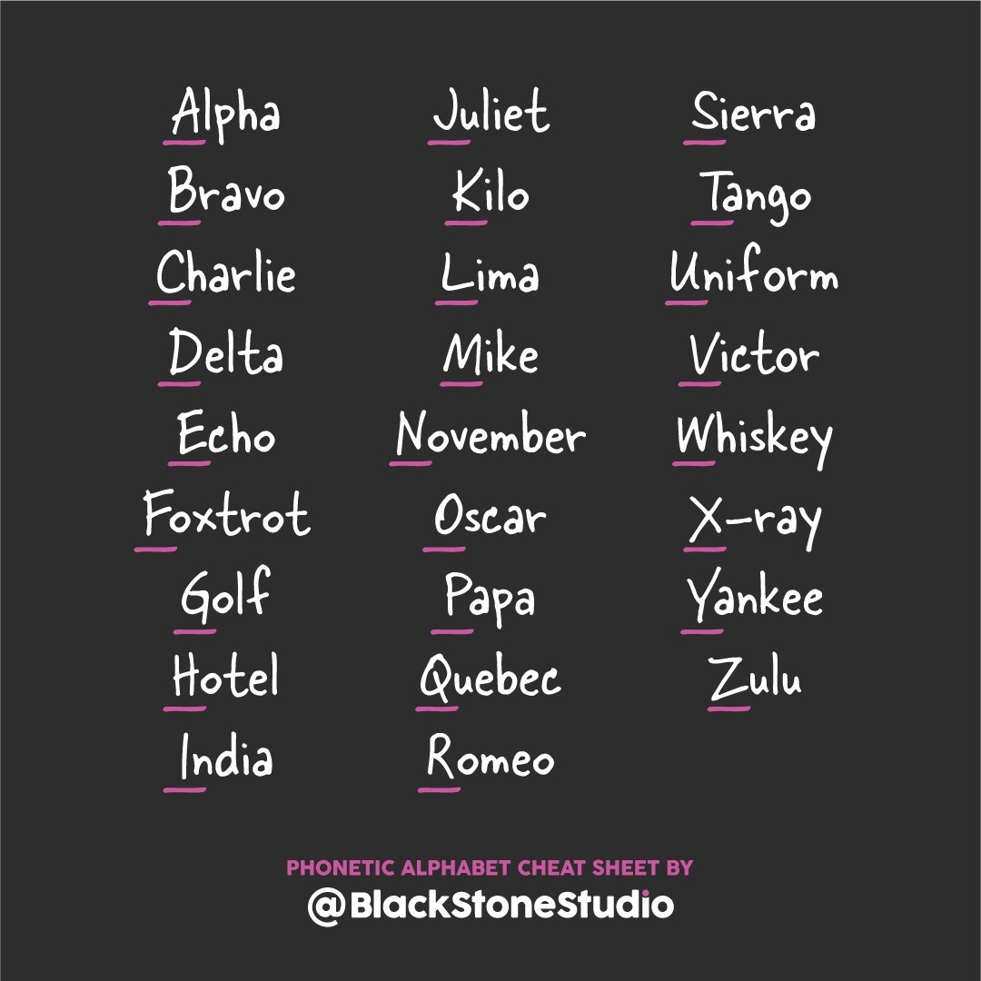 Military Phonetic Alphabet Cheat Sheet BlackStone Studio
