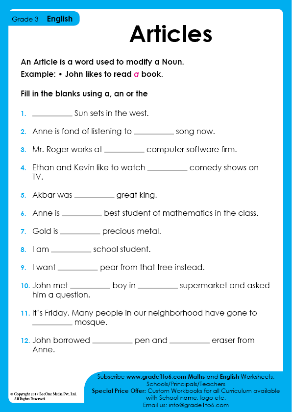 Articles Worksheet For Class 4 Grade1to6 Worksheets LibraryArticles Worksheet For Class 4 Grade1to6 Worksheets Library