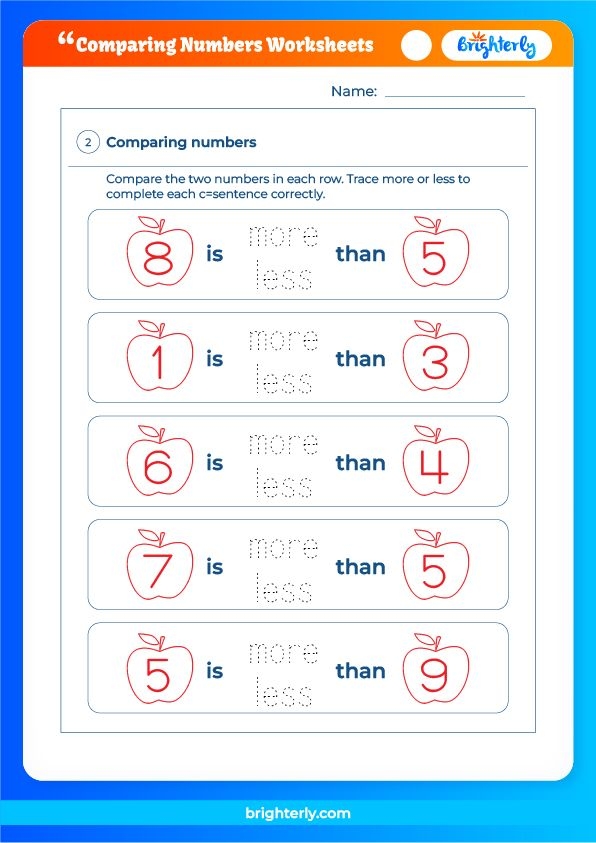 In educational settings, educators use Comparing Numbers Worksheets to reinforce lessons. As an example, a math worksheet might include simple addition problems, while an English worksheet may have vocabulary exercises.