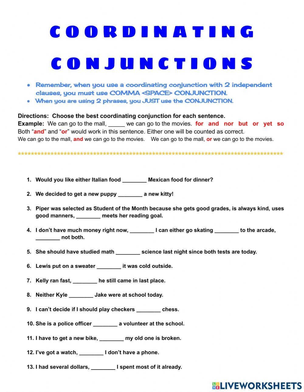 Coordinating Conjunctions Live Worksheets Worksheets Library (worksheets.clipart-library.com)