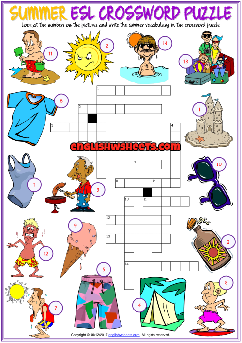 Summer ESL Printable Crossword Puzzle Worksheet For KidsSummer ESL Printable Crossword Puzzle Worksheet For Kids (www.englishwsheets.com)