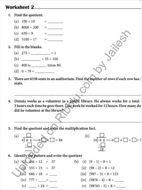 Division Worksheets For Class 4 Maths