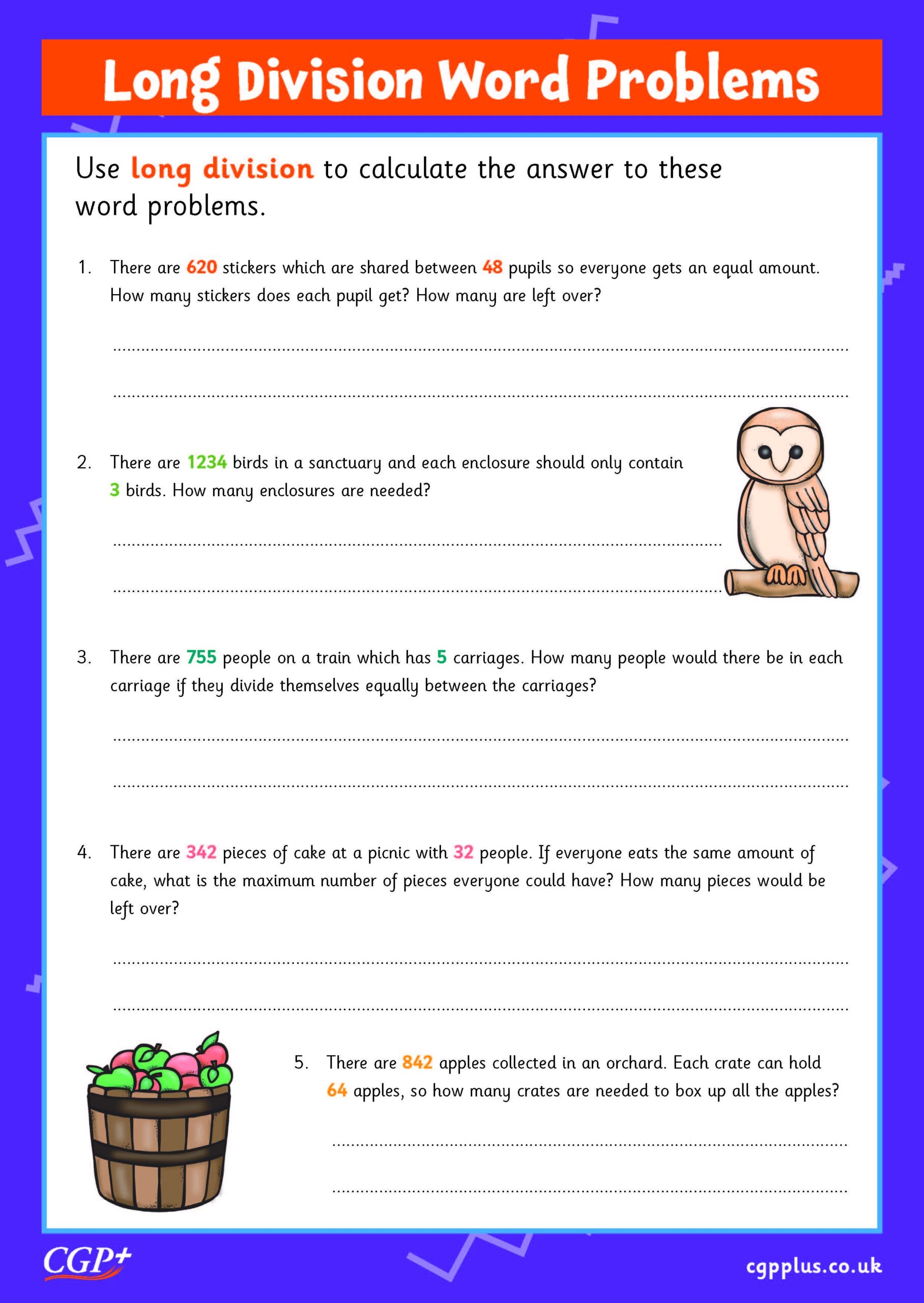 Long Division Word Problems Year 6 CGP Plus Worksheets LibraryLong Division Word Problems Year 6 CGP Plus Worksheets Library