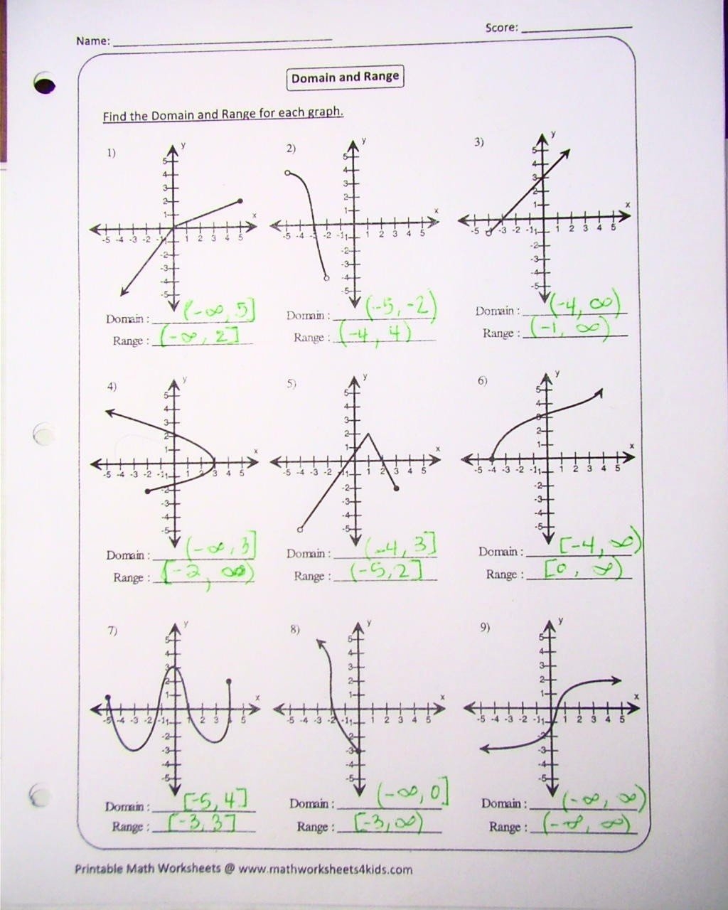 Domain And Range Worksheet