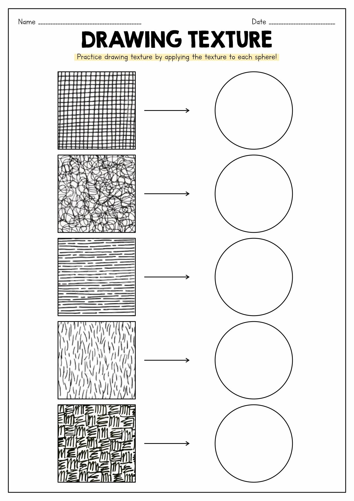 Drawing Texture Worksheet Line Art Lesson Art Lesson Plans Elementary (www.pinterest.ca)