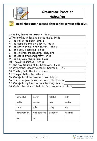 Download and Print English Grammar Worksheets Listed below