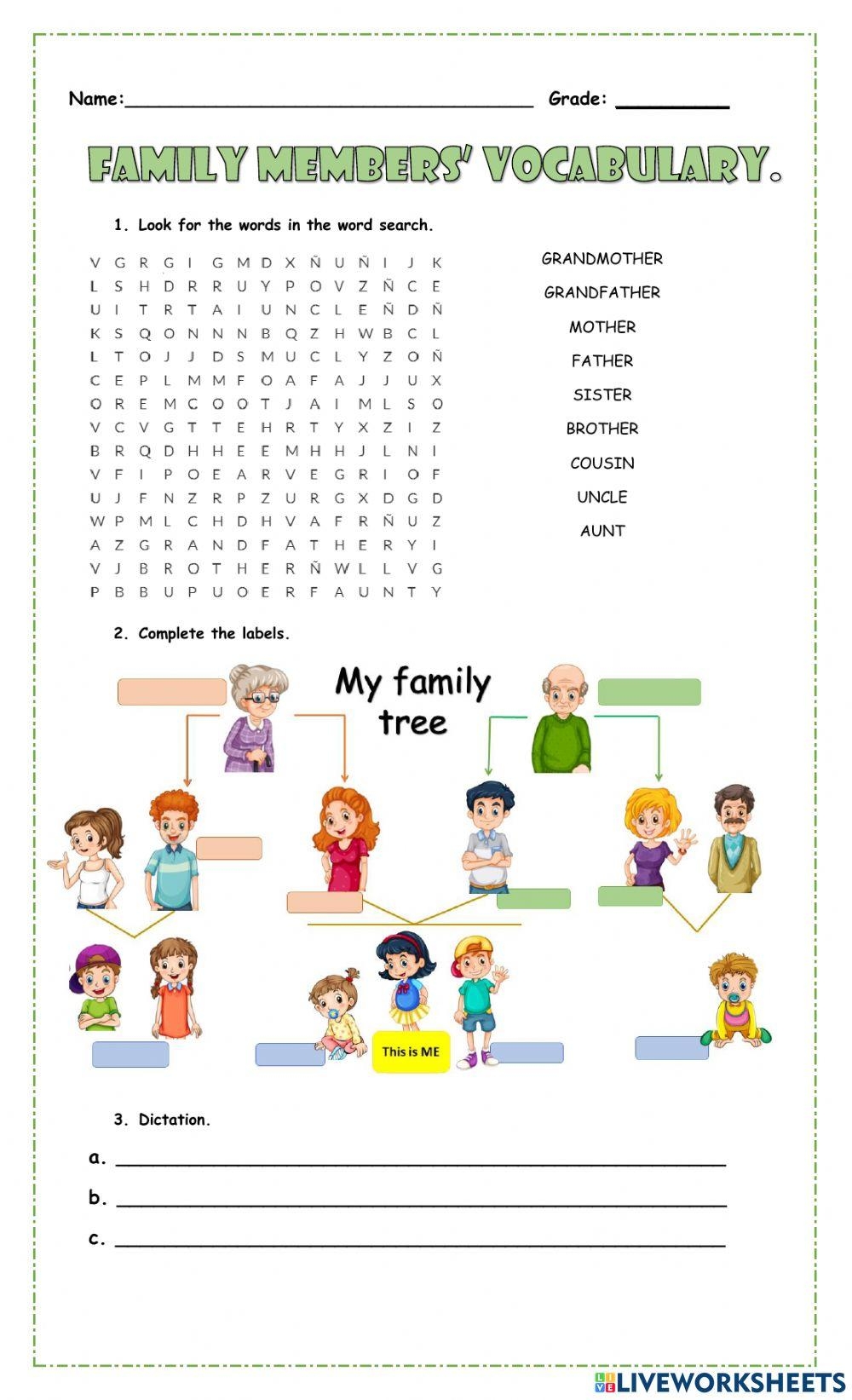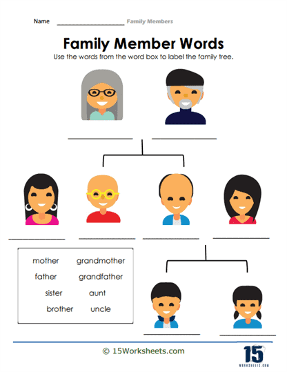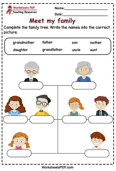 In educational settings, educators use Family Members Worksheet to reinforce lessons. For example, a math worksheet might include simple addition problems, while an English worksheet may have vocabulary exercises.