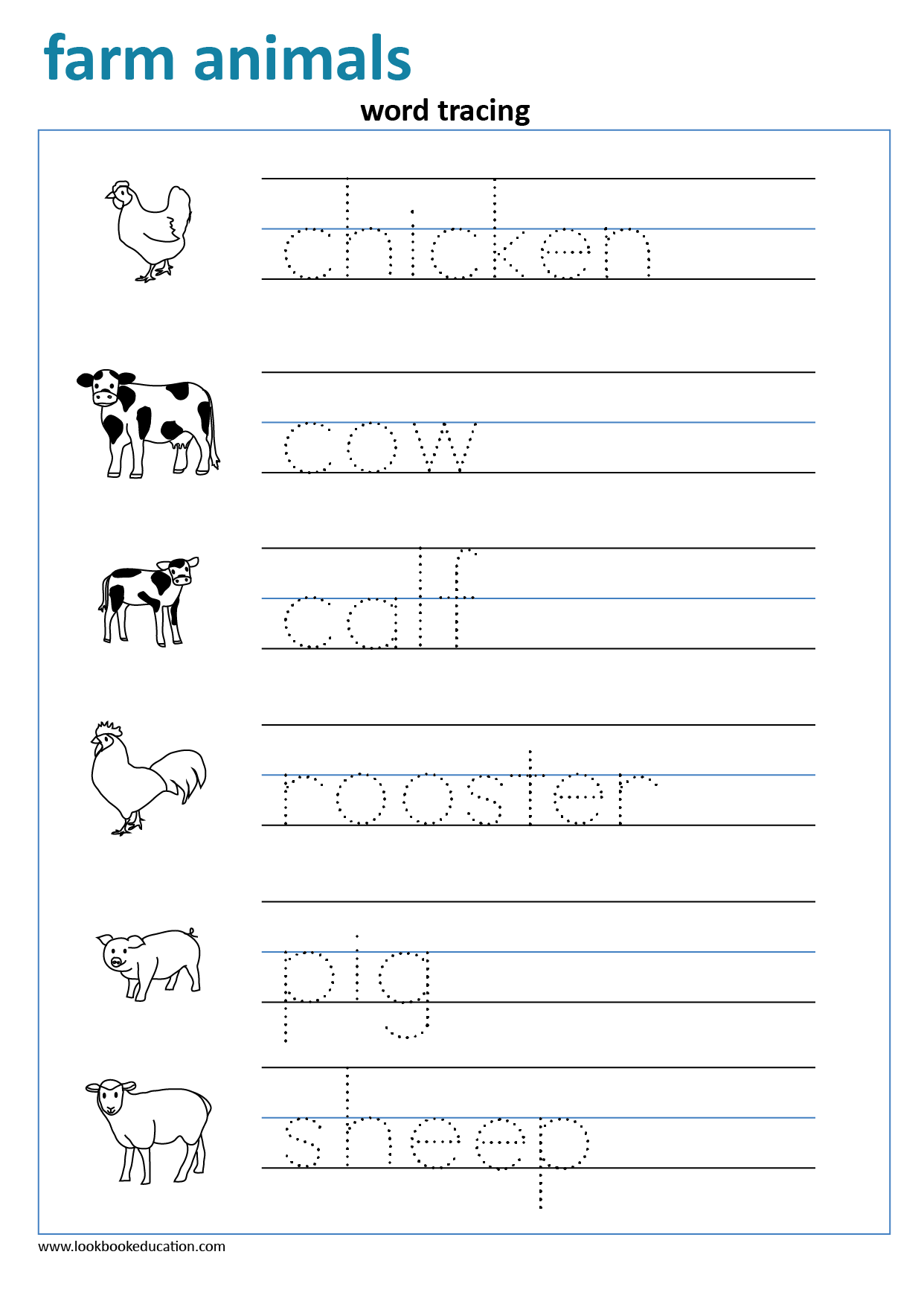 Worksheet Word Tracing Farm Animals Lookbook Education