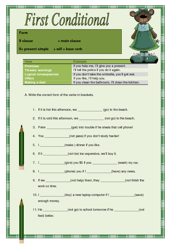 In educational settings, educators use First Conditional Worksheet to assess student understanding. As an example, a math worksheet might include equations to calculate, while an English worksheet may have vocabulary exercises.