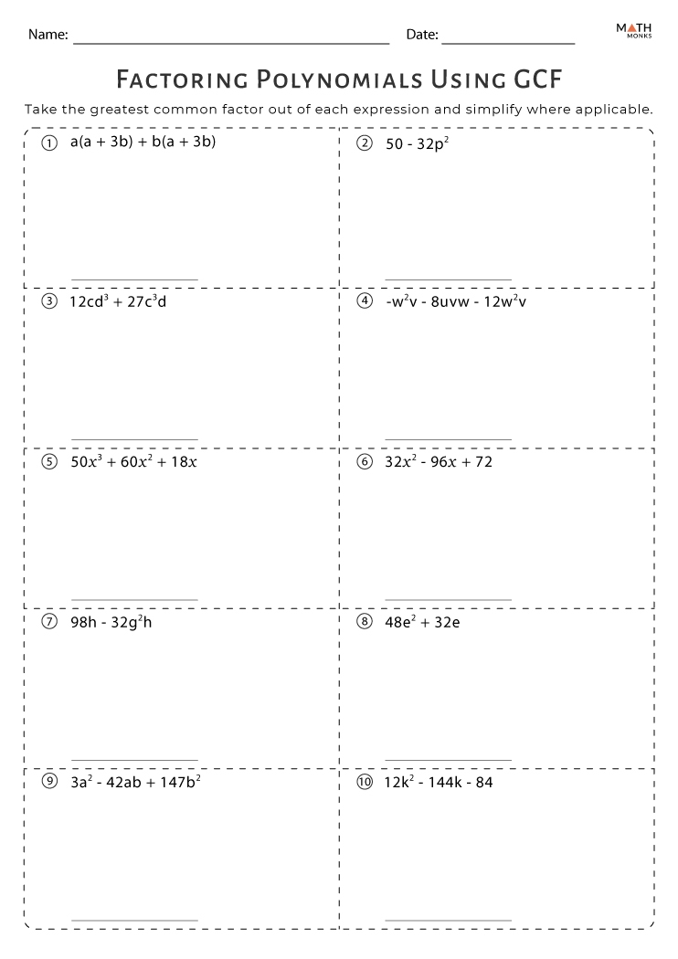 Factoring GCF Worksheets Math Monks