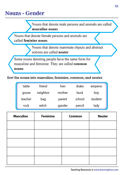 Outside the classroom, worksheets are also popular in offices. Gender Nouns Worksheet can be used to track spending. Team leaders may use worksheets to monitor progress.