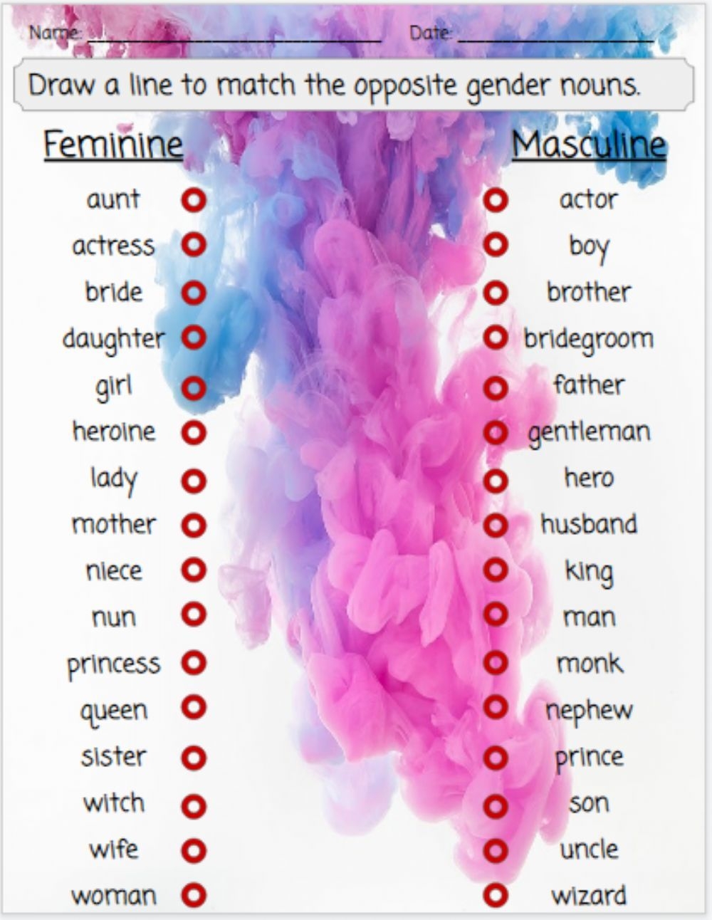 Gender Nouns Match Worksheet English Grammar Worksheets 2nd Grade