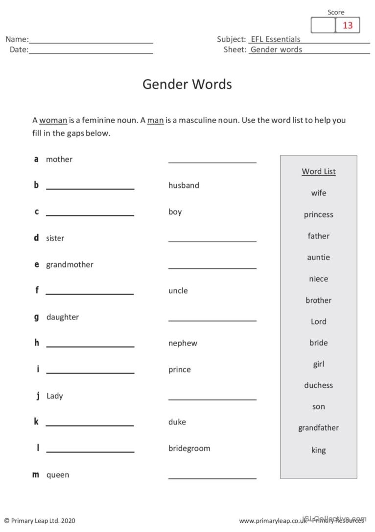 Learning about gender nouns can be a fun and interactive way to improve your language skills. Whether you’re a student or a teacher, using a gender nouns worksheet can help you practice and master this important aspect of grammar.