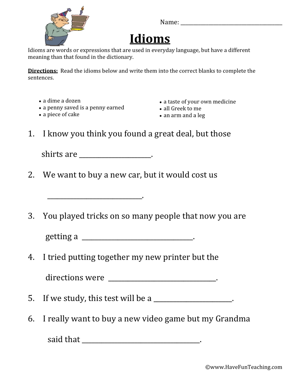 In classrooms, educators use Idioms Worksheet to reinforce lessons. For example, a math worksheet might include simple addition problems, while an English worksheet may have vocabulary exercises.