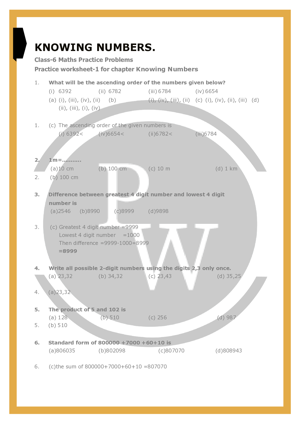 Worksheet For Class 6 Maths Chapter 1 Physics Wallah (www.pw.live)