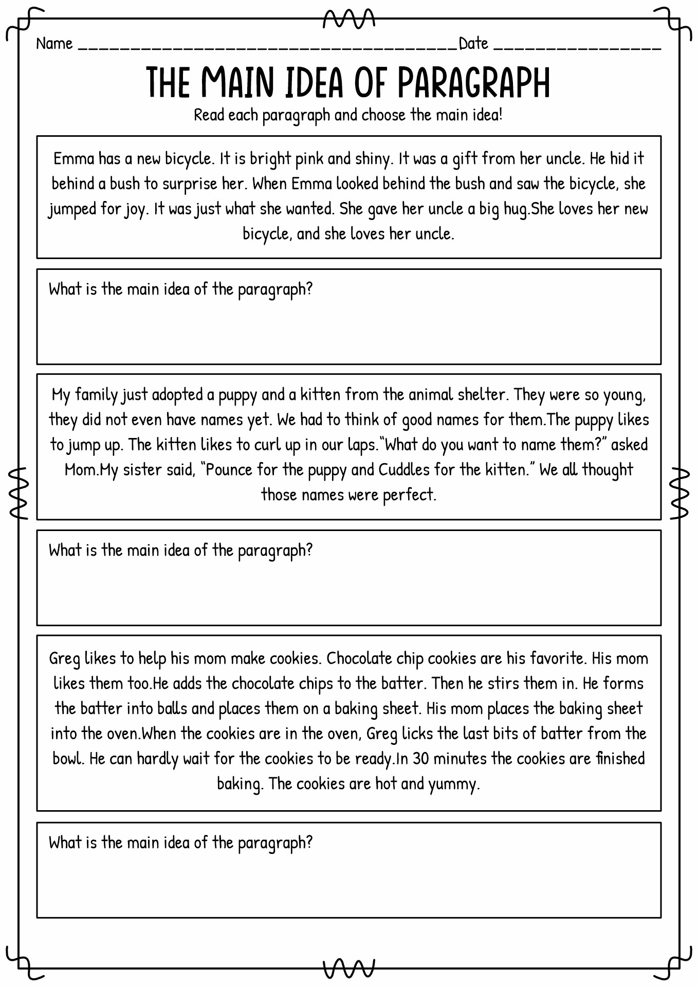 One common type of main idea worksheet is the “find the main idea” worksheet. These worksheets typically present a short passage or paragraph, followed by multiple-choice questions that ask students to identify the main idea. By selecting the correct answer, students demonstrate their understanding of the central theme or message of the text.