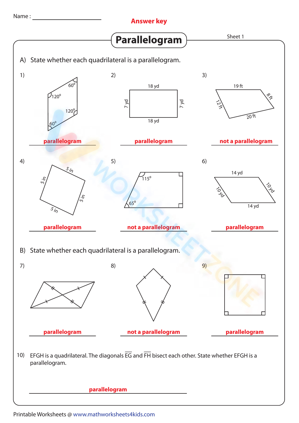 Identifying Parallelograms With Measures Worksheet Worksheets Library