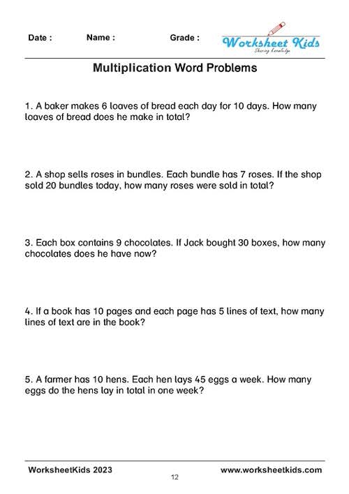 In classrooms, educators use Multiplication Problems to reinforce lessons. For instance, a math worksheet might include fractions to solve, while an English worksheet may have vocabulary exercises.