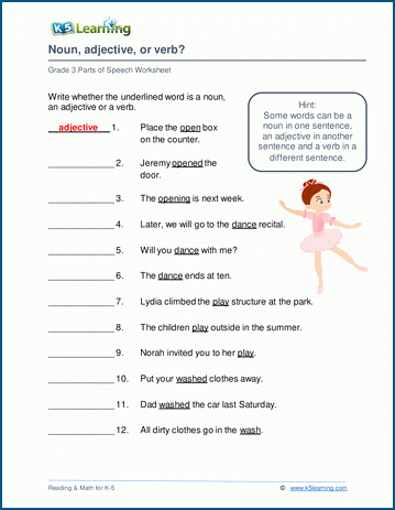 Outside the classroom, people also use worksheets in business settings. Noun Verb Adjective Worksheet can be used to organize data. Team leaders may use worksheets to create timelines.