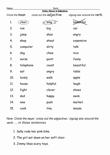 Download and Print Noun Verb Adjective Worksheet Listed below