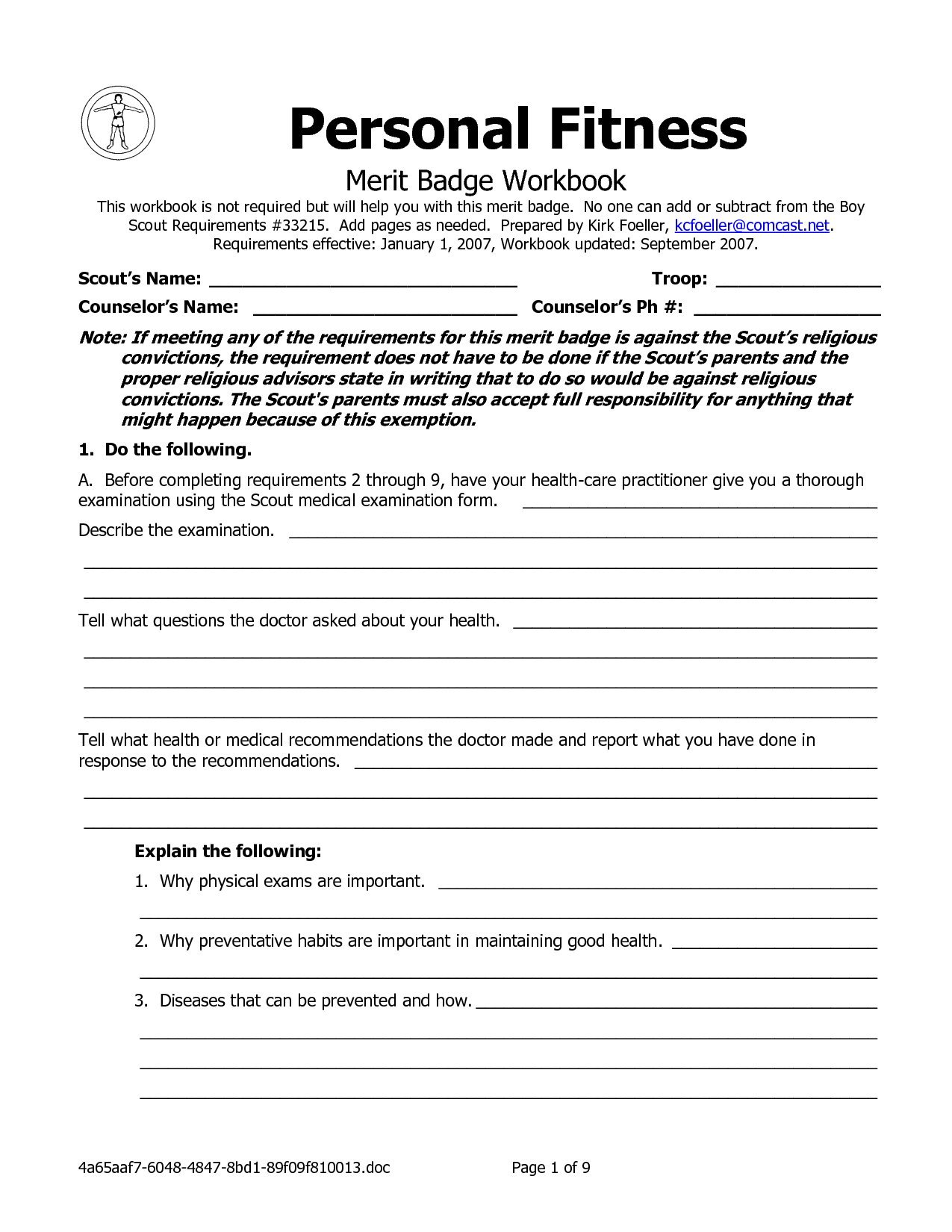 Personal Fitness Merit Badge Worksheet Blog Dandk (blog.dandkmotorsports.com)