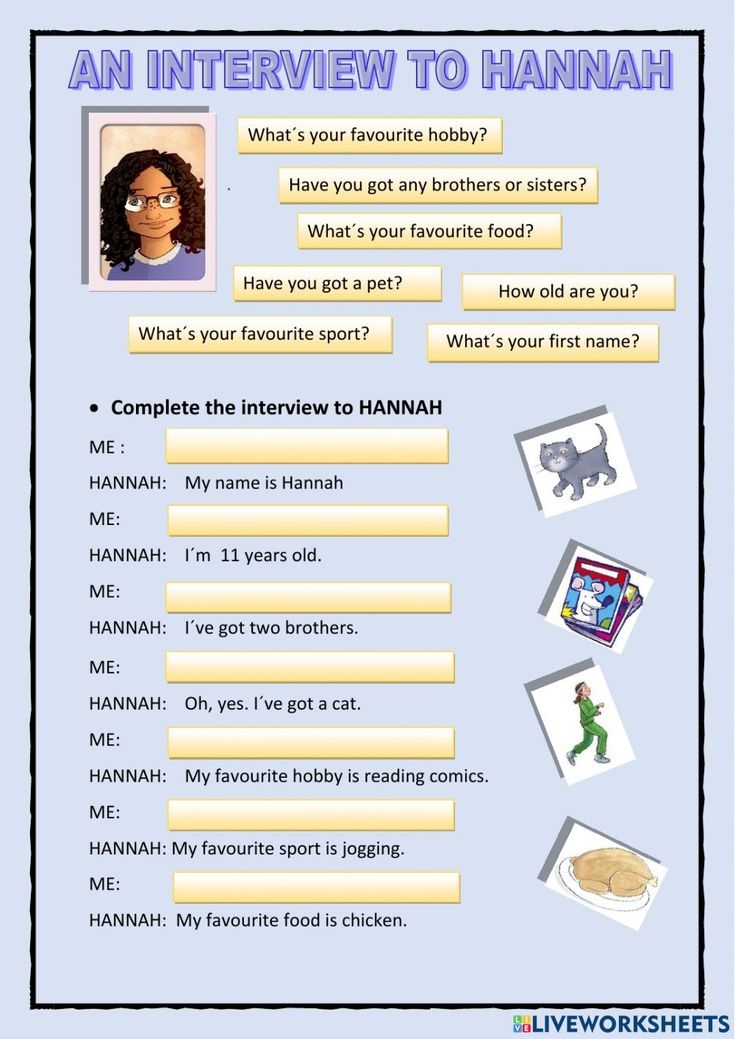 Interview With Hannah WorksheetInterview With Hannah Worksheet
