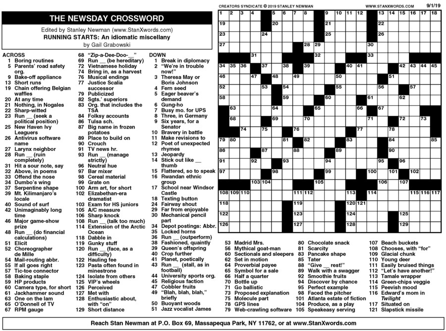 Premier Sunday Crossword Printable