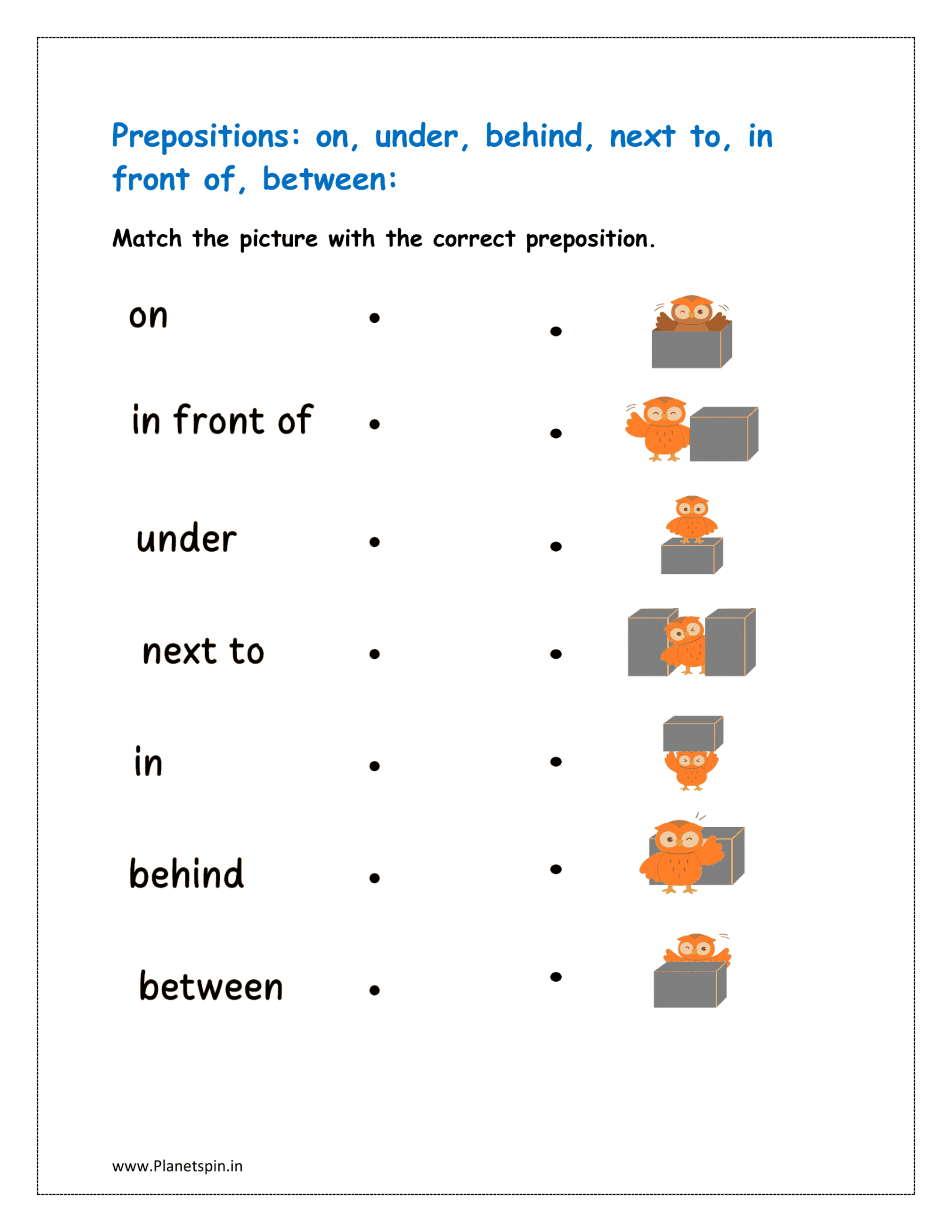 Preposition Worksheet For Class 1 Planetspin inPreposition Worksheet For Class 1 Planetspin In