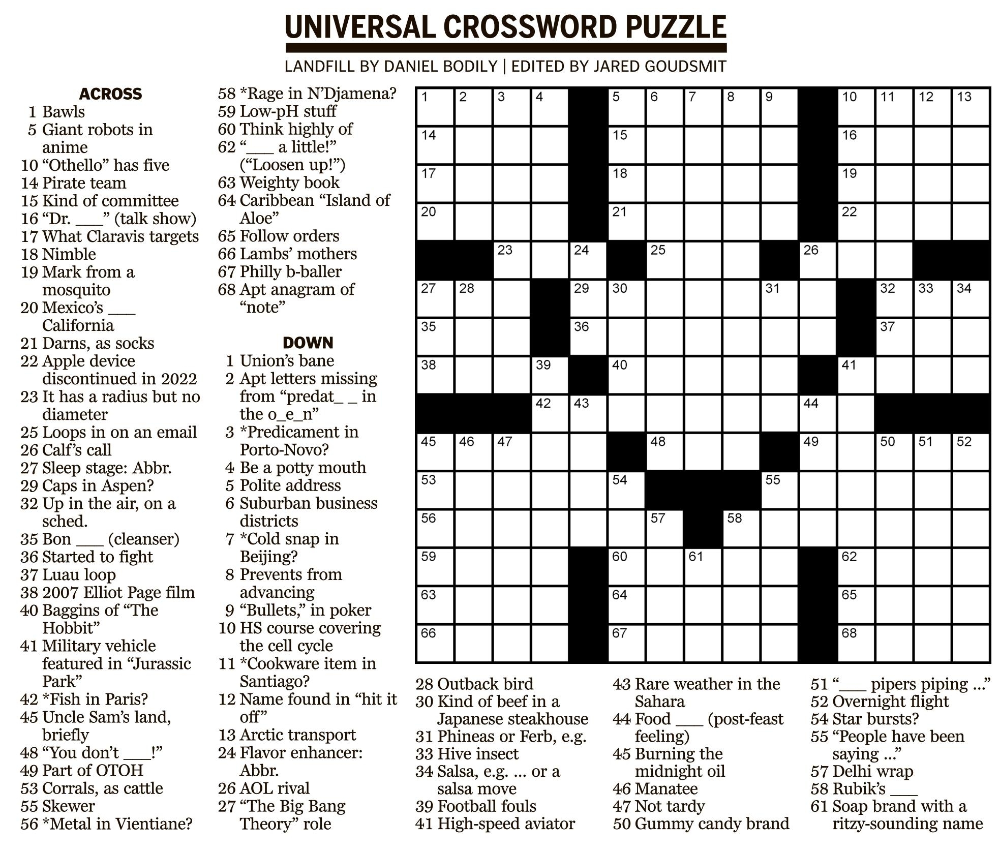 Printable Universal Crossword Puzzles are convenient for those who prefer the traditional pen-and-paper approach to solving puzzles. With just a few clicks, puzzle lovers can easily access and print out the latest Universal Crossword Puzzle, providing hours of entertainment and mental stimulation. Whether at home, on a commute, or during a break at work, these printable puzzles offer a portable and enjoyable way to pass the time.