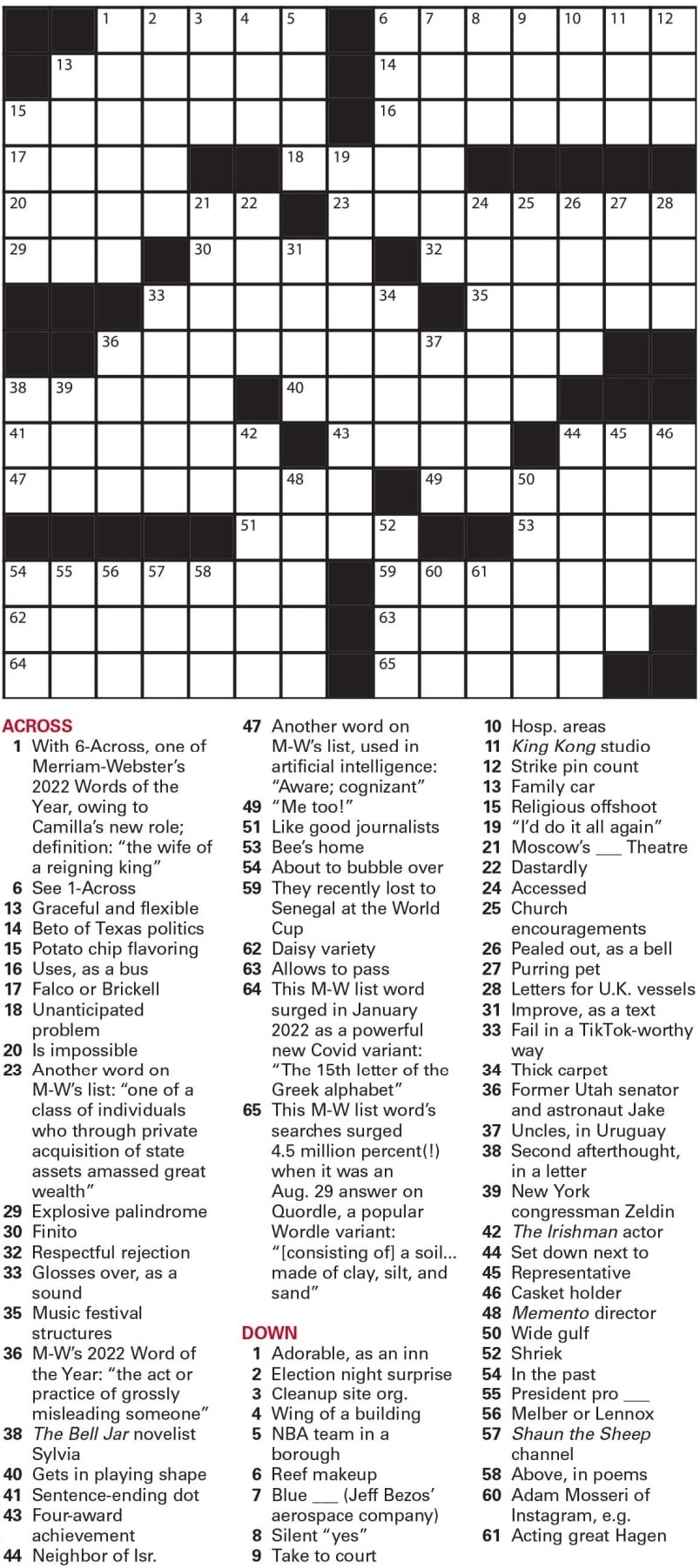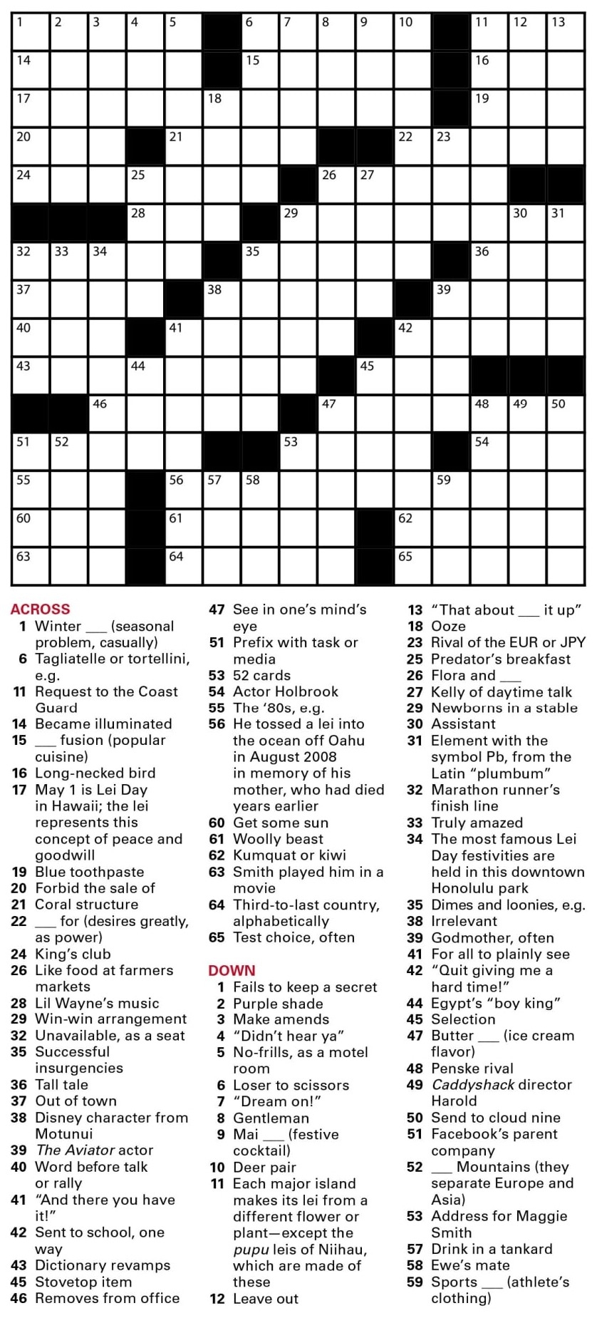 Download and Print Printable Wall Street Journal Crossword Puzzle Listed below