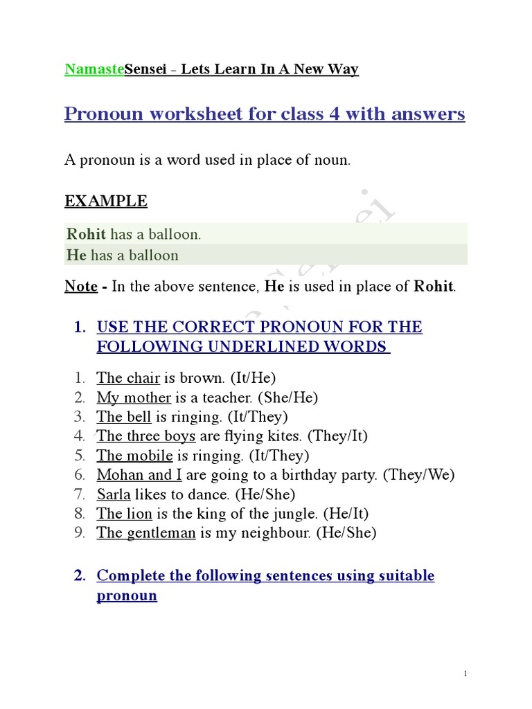 In educational settings, teachers use Pronoun Worksheet For Class 4 to reinforce lessons. As an example, a math worksheet might include equations to calculate, while an English worksheet may have reading tasks.