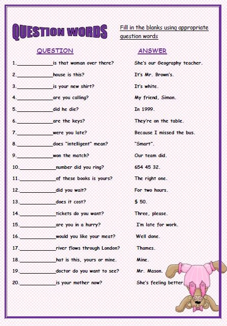 With a question words worksheet, students can practice using words like “who,” “what,” “where,” “when,” “why,” and “how” in a variety of contexts. These worksheets often include fill-in-the-blank exercises, matching activities, and even creative writing prompts that encourage students to use question words in their own sentences. This can help solidify their understanding of how to form questions in English.