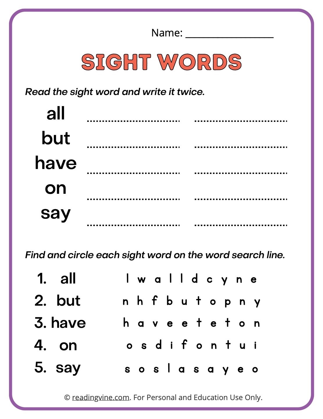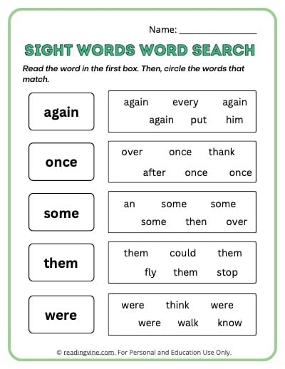 Word searches are a popular activity that can help children practice identifying and locating sight words within a grid of letters. Matching games allow children to match sight words with corresponding images or sentences, helping them make connections between words and their meanings.