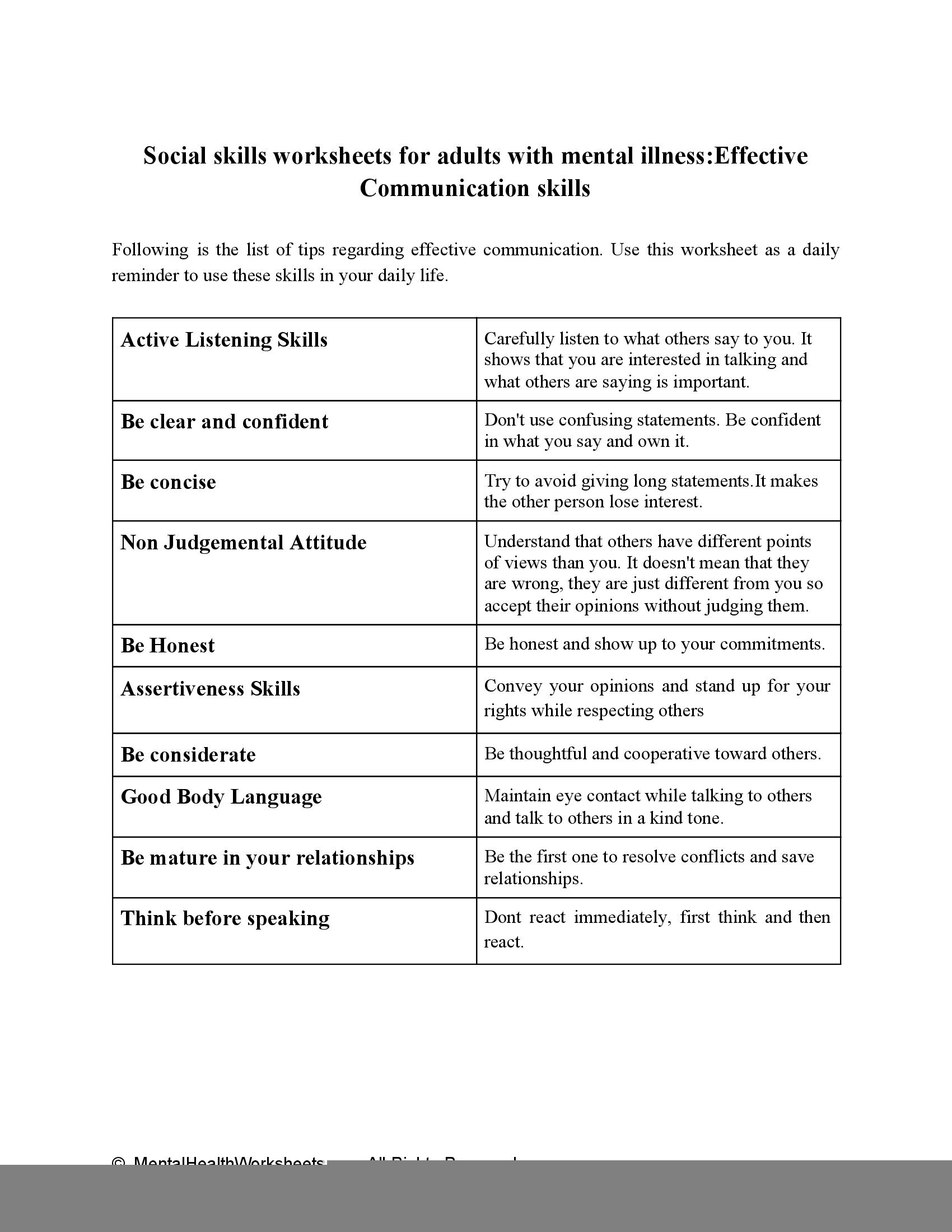 By regularly engaging with social skills worksheets, individuals can develop a deeper understanding of their own emotions and behaviors, as well as learn how to interact more effectively with others. These worksheets provide a safe space to practice new skills and receive feedback, ultimately leading to increased confidence and competence in social situations.