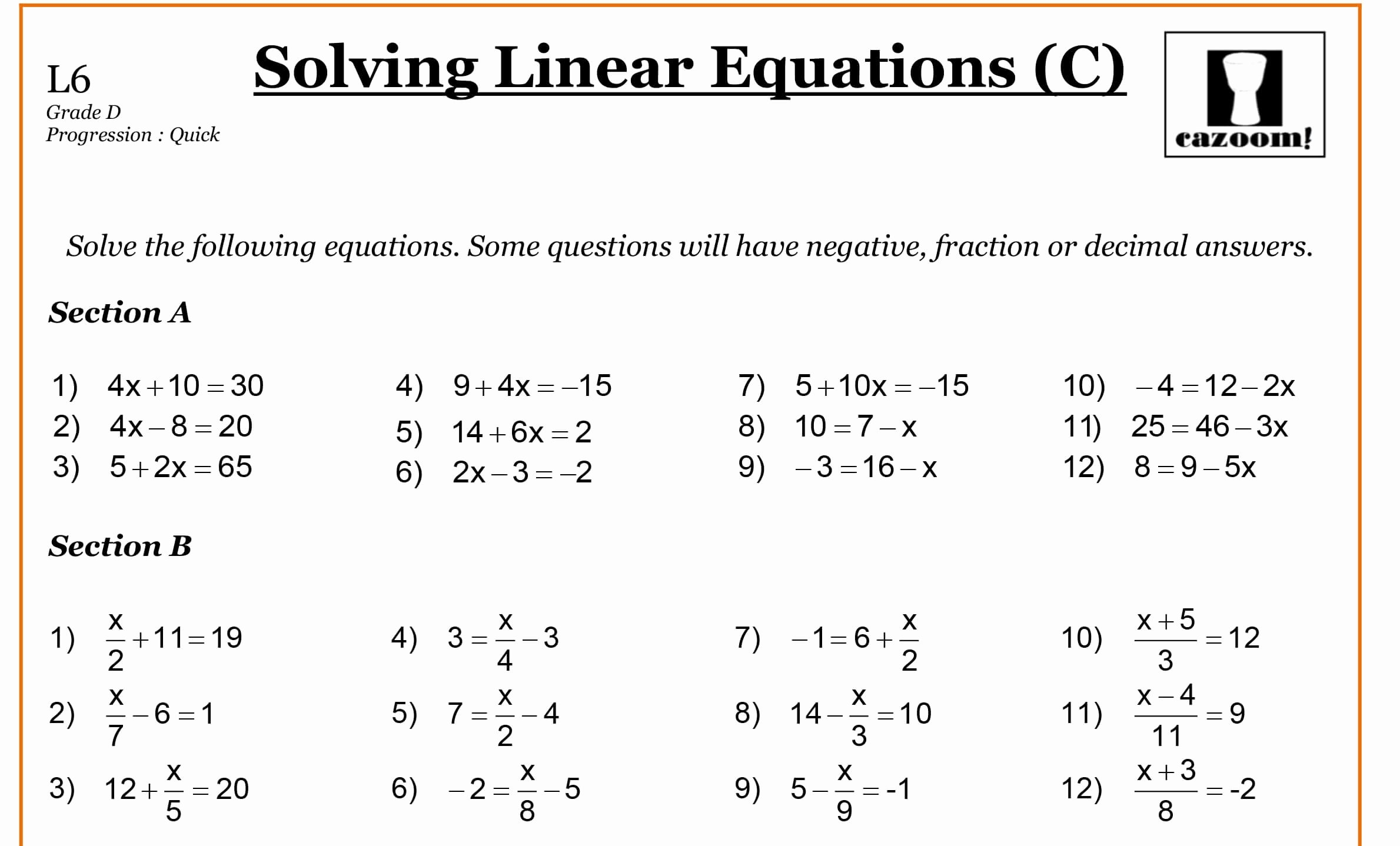 Free Worksheets For Linear Equations Grades 6 9 Pre Algebra (worksheets.clipart-library.com)