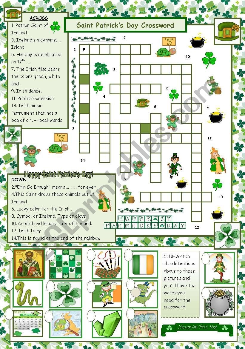 St. Patrick’s Day is a festive holiday celebrated on March 17th each year. It is a day to honor the patron saint of Ireland, St. Patrick, and is typically celebrated with parades, wearing green, and enjoying traditional Irish foods and drinks. One fun activity to add to your St. Patrick’s Day celebrations is a themed crossword puzzle that can be enjoyed by all ages.