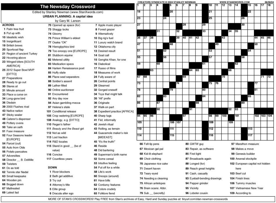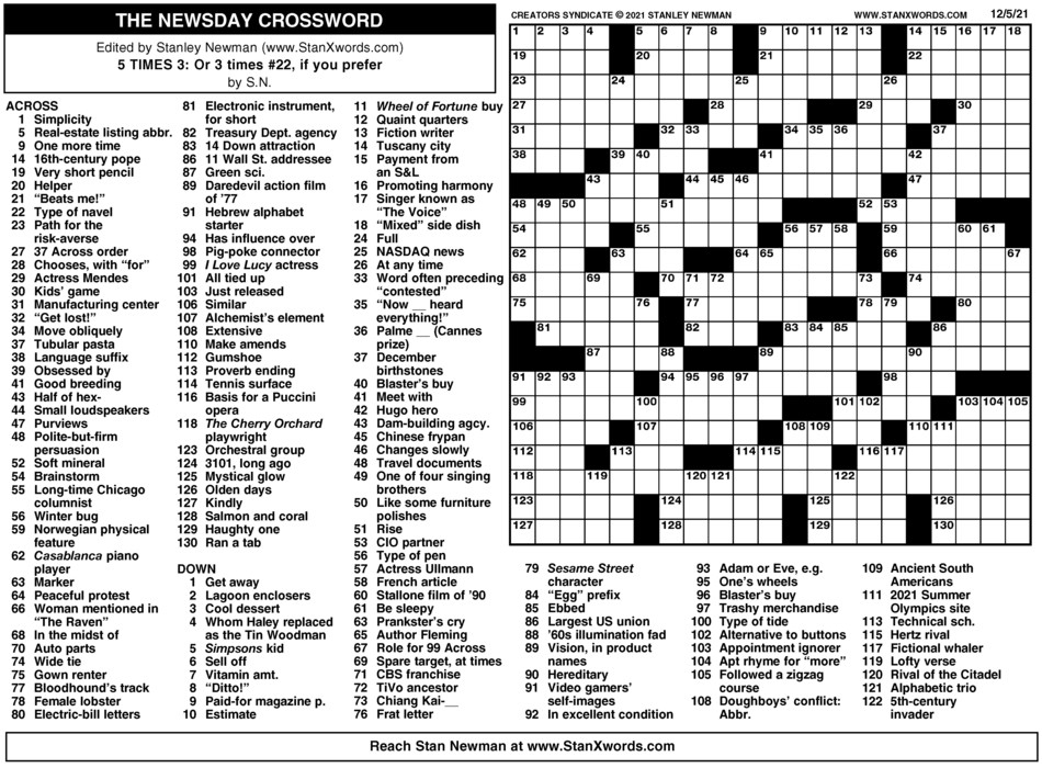 Stanley Newman Crossword Printable Printable Free Templates (oishii.lu)