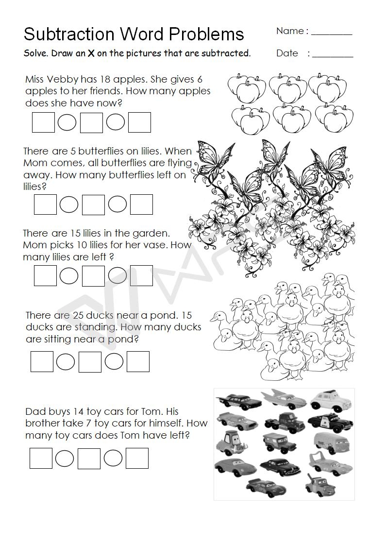 In classrooms, teachers use Subtraction Word Problems to help students practice skills. For instance, a math worksheet might include simple addition problems, while an English worksheet may have vocabulary exercises.