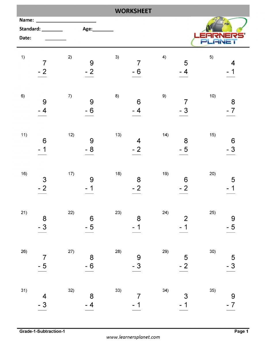Subtraction Worksheet For Class 1