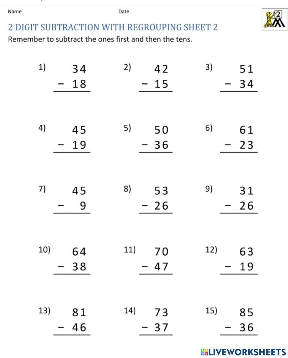 Subtraction Online Exercise For Grade 1 Live Worksheets Worksheets