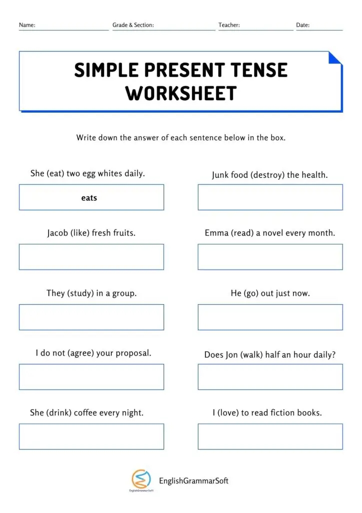 Simple Present Tense Worksheet For Class 4 (worksheetfullohmmeter.z19.web.core.windo…)