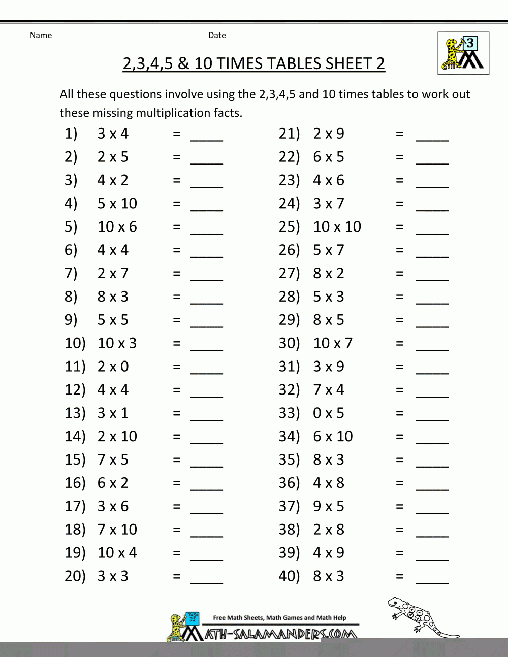 Grade 2 Math Worksheets Multiplication Tables 2 5 K5 LearningGrade 2 Math Worksheets Multiplication Tables 2 5 K5 Learning (www.k5learning.com)